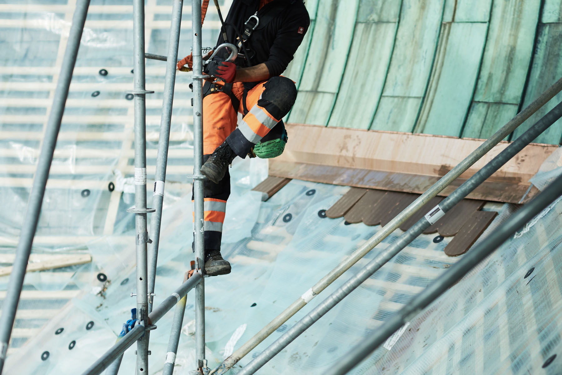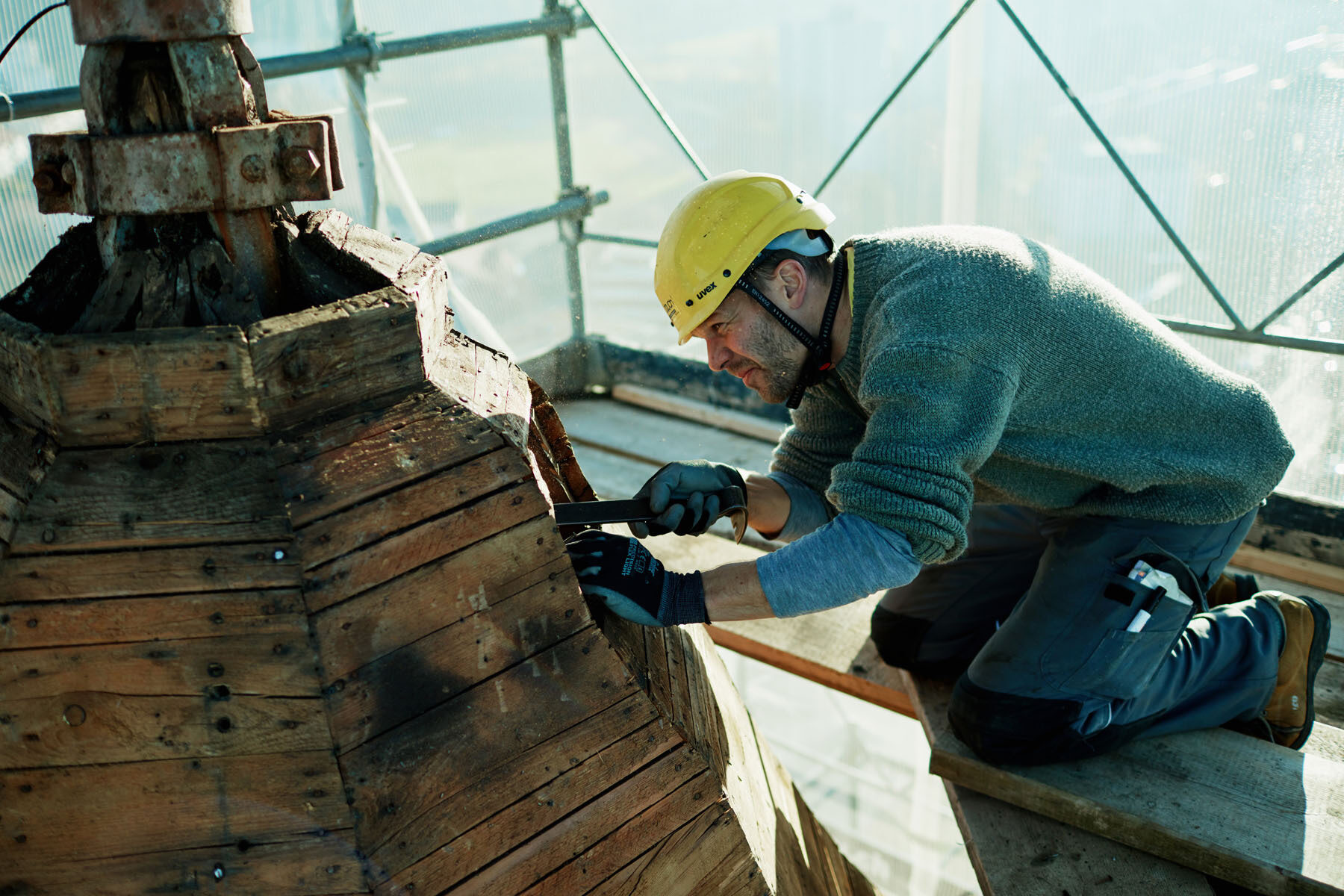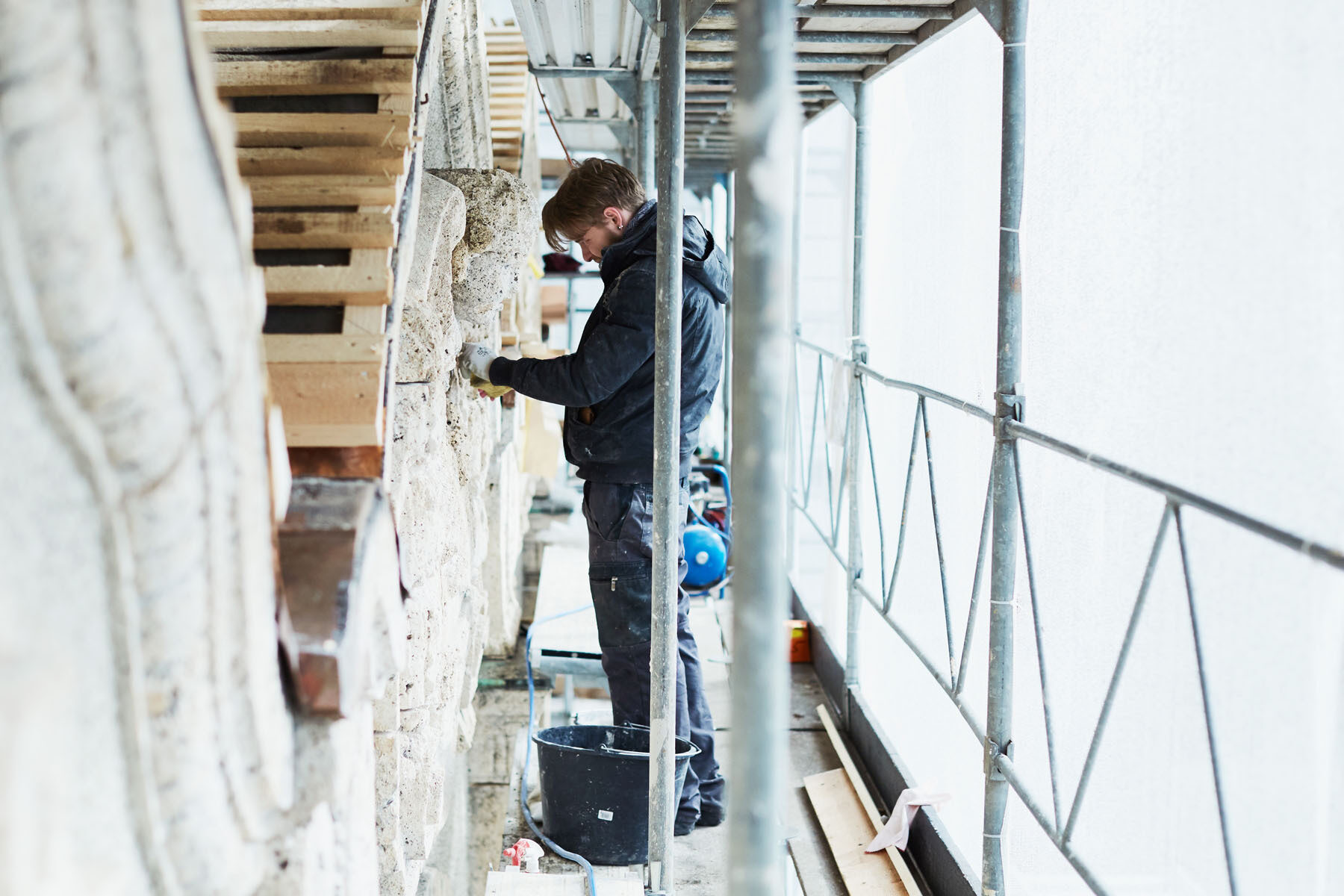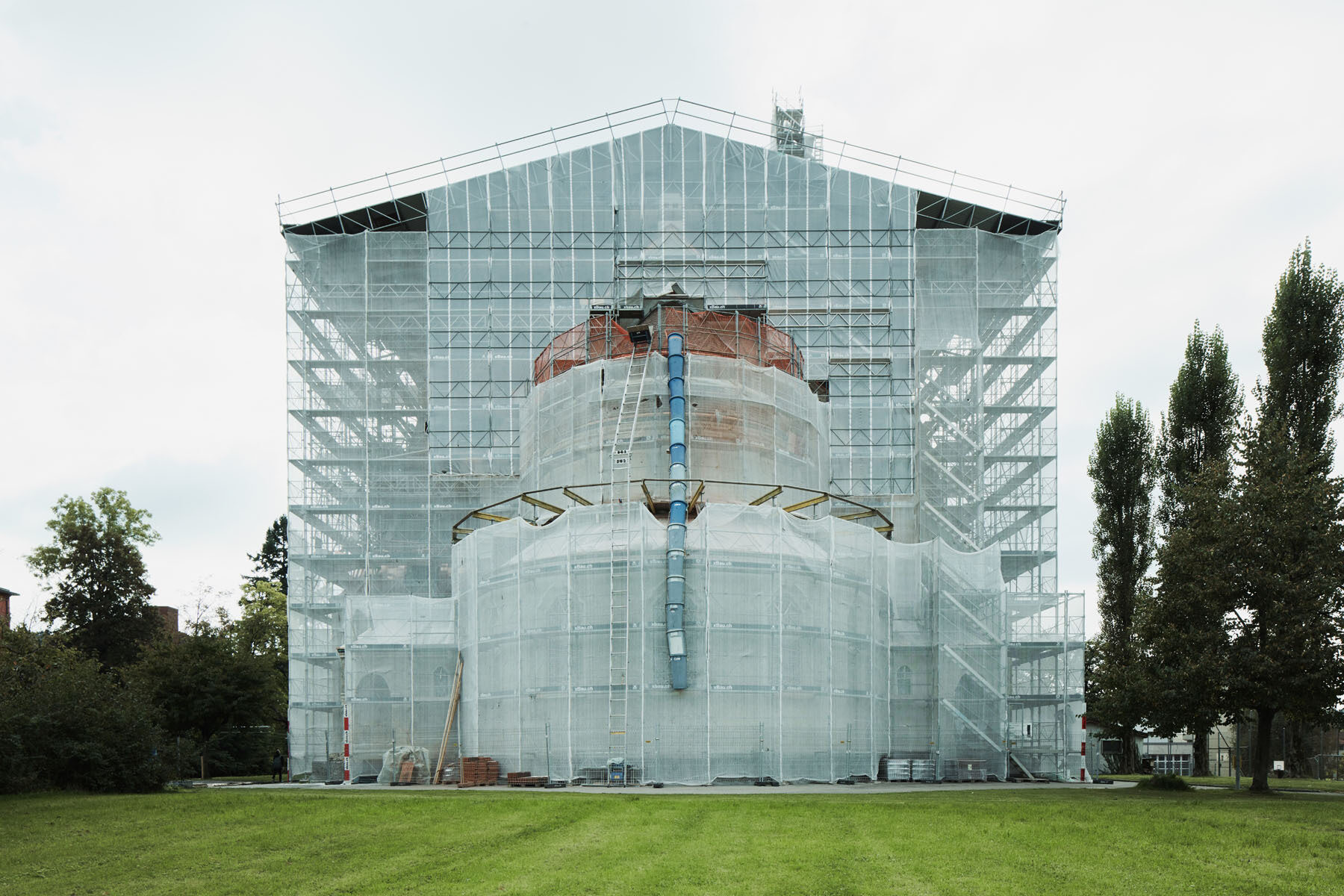 After the church interior had undergone a restoration in 2004–2005, the outer envelope was next to be renovated. Extensive scaffolding and an emergency roof over the entire building, both in themselves a construction project of considerable effort, made the work possible in the first place. More